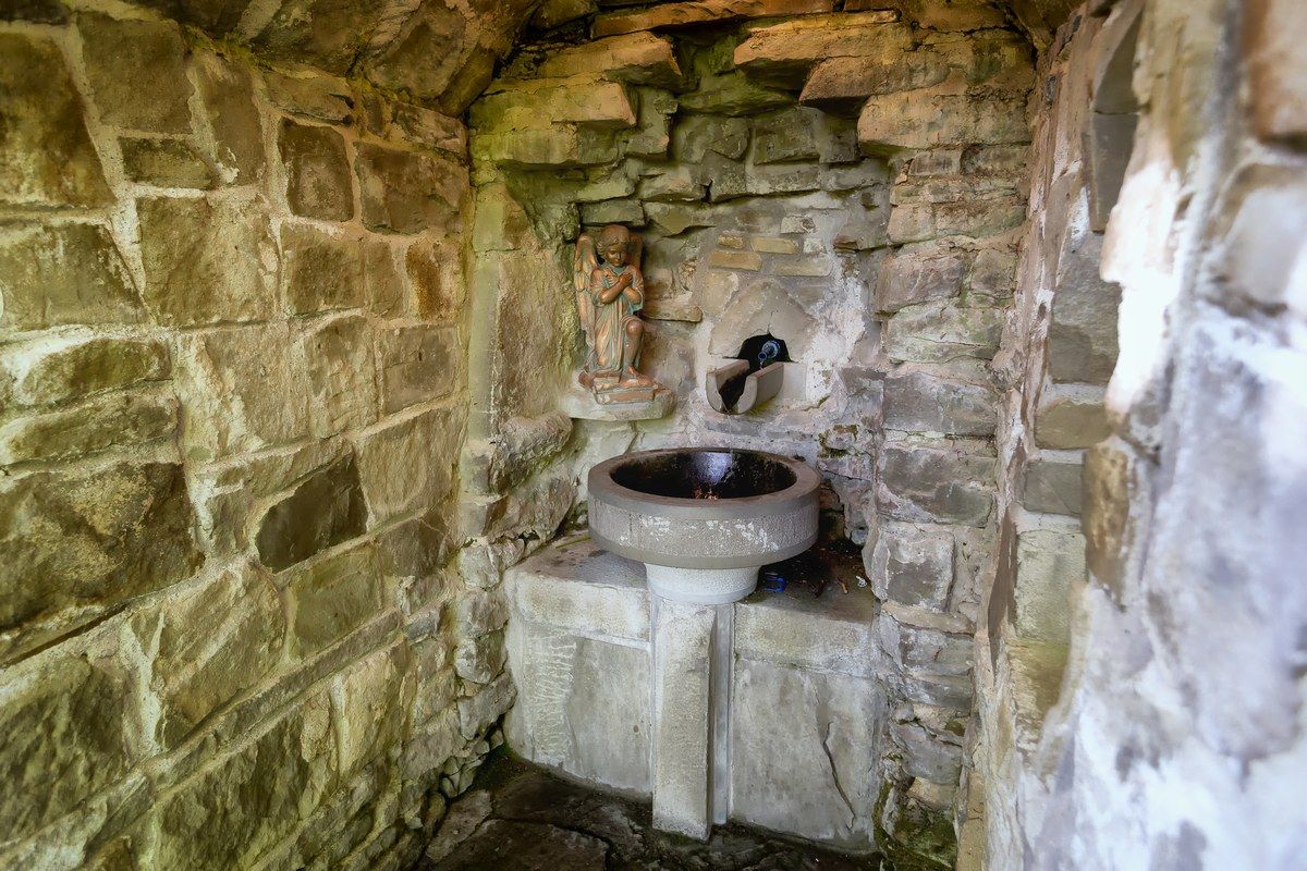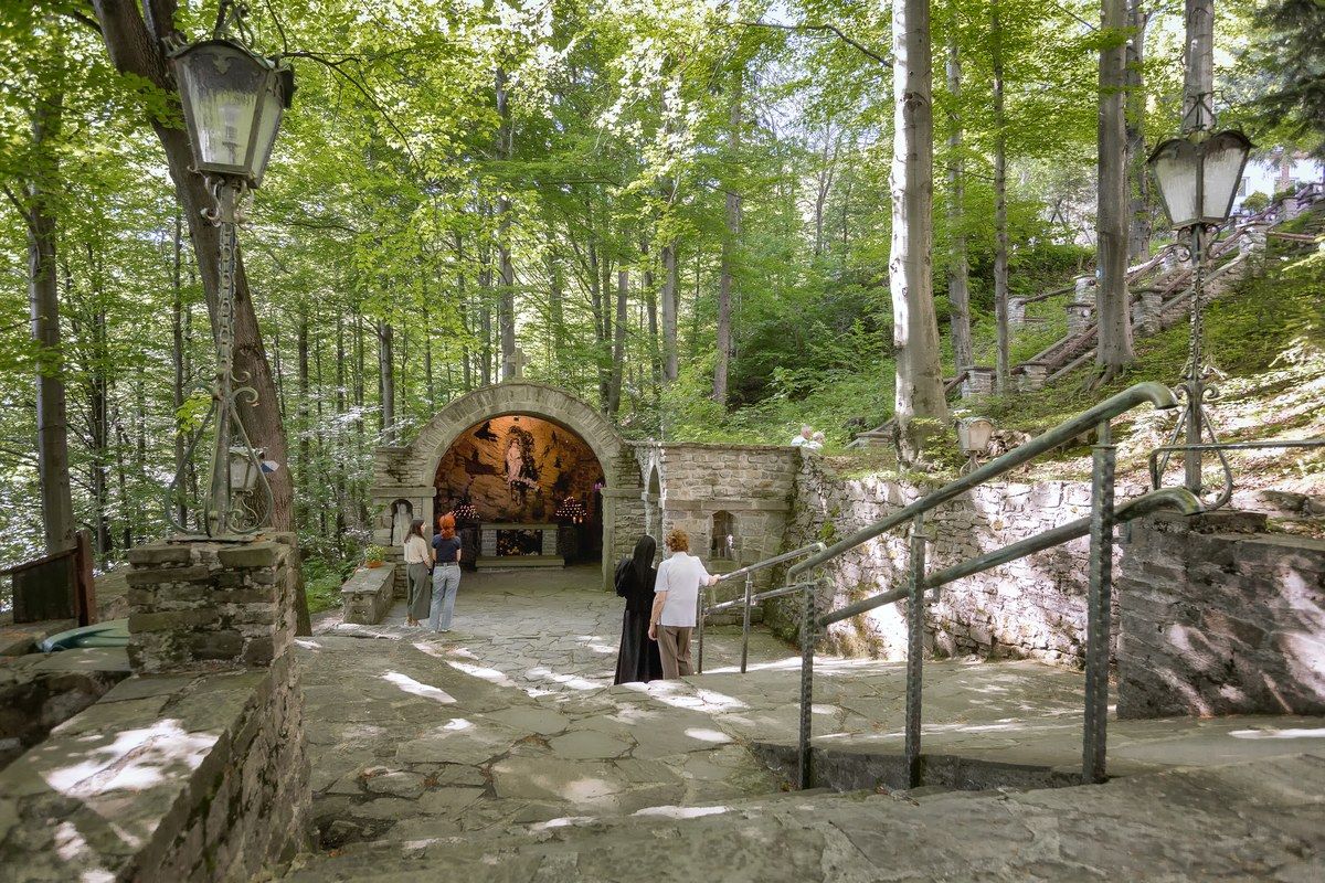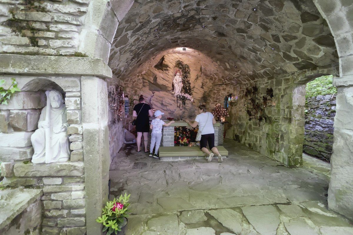Obok Sanktuarium Matki Bożej Szczyrkowskiej znajduje się Grota Matki Boskiej ze źródełkiem.